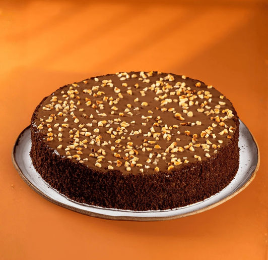 - Finas camadas de pão de ló de chocolate zero açúcar, intercaladas com recheio de brigadeiro belga zero açúcar e lactose e finalizadas com avelãs picadas.